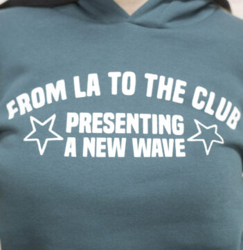 Buzo con capucha boxy fit frisa estampado